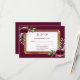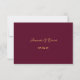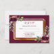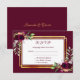 En OSA kort för elegant för ett bröllop med svarsblanketter per datum, namn etc. Böhmen, boho stil vattenfärgade fjädrar och ro, blommor i burgundi. En faux guld och vit ram. Mörkens bakgrund och text har brutits. Tillbaka: Namn av bruden och brudgummen och datum för bröllop. Golden text.