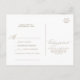 Den romantiska kalligrafin sång i guld kräver OSA vykort är perfekt för ett enkelt bröllop. Den moderna klassiska designen har finare-snurrar och vitaktiga blomningar med elegant elegant-handskriven faux champagne guld-folie-typografi. Bygg din gästlista för bröllop och din danslista för golv sång på gång! Med detta vykort från bröllop frågar man på ett bekvämt sätt gästerna om de kommer att kunna närvara vid bröllop, och även vad sång kommer att få dem att dansa. Obs! Den här designen har inte äkta guld-folie. Det är en grafik av hög kvalitet som framställs som guld-folie.