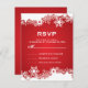 Rött svarskort för OSA under vintern, med en vit gräns av snöflingor på ljusröd bakgrund. Ett val av perfekt för Winter December bröllop.