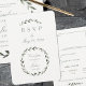 En OSA för returpost med val av måltid, med en vattenfärg som målas oliver och gren och krans med dina första och sista namn inuti kransen.