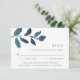 Designat att samordna med vår pressade botaniska bröllop-samling har denna chic tealblått och vitt OSA kort ett enda vår med pulantultramarinblått vattenfärgsbotaniskt löv, vilket gör att det önskade responsdatumet och anpassningsbarnas godkännande och avböjande formulering överskrids. Anpassa med alla val eller målval under.