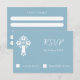 Ett svarskort för himmel blå OSA med en vit blommigt kor. En del av Blommigt Kor Christening Collection.