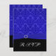 Observera att bandet och diamanterna är tryckta på och inte verkliga. Svarskortet för den här koboltblå och svarta dammbyn matchar bröllopsinbjudan som visas nedan. Om du vill ha några andra matchande objekt skickar du e-post till niteowlstudio@gmail.com. Befintliga matchande artiklar visas nedan.