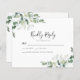 Med den här vackra eukalyptudesignen kan du ställa romantiken för din bröllopsdag. Detta budgetkort ingår i ett bröllop-paket med samordningsposter som är tillgängliga. **LÄS FÖRE KÖP** 1. Budgetstationeringsåtgärder: 4,5 x 5,6 tum och passar in i A6-kuvert. Du kan lägga till vita kuvert i din beställning. 2 Varje lakan är en artikel - ingen styckning krävs. 3 Kardstammen är ljusvit med en halvblanka avsluta och en vikt på 110 lbs som lämpar sig för kontorsbruk. 4 Vi råder INTE dig att välja papper satängalternativ eftersom det är en mycket tunnare papper på 80 lb, vilket mer liknar journalsidor än kardstock. 5 Om du gör ändringar och designen beskärs eller inte ser höger ut på skärm, användor du Live Design Service för att hjälpa dig att åtgärda det. 6 Din beställning går direkt till skrivaren. Vad du ser på skärm är vad som kommer att skrivas ut och skickas till dig. Kontrollera stavningsfel eller felaktig information tre gånger innan du ställen din beställning.