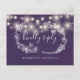 En lila OSA kort med söt sträng ljus, handdragen blommigt och chic typografi. Den omvända informationen innehåller din information och en förfrågan från roligt gäst sång. Designad av Thisisnotme©