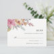 OSA kort för blommigt av elegant i nedsänkta toner av gröntar för rosa, persika och sage har en halvfärgsbukett i det övre lämnat hörnet, med önskat OSA, acceptera och avböja formuleringar i klassiska, svartsvarta bokstäver.