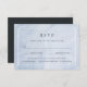 Modern bröllop OSA och kort för chic inspirerat av opala stenar har en pastellblå vattenfärgsbakgrund med en vit dubbla gräns och dina OSOR i elegant off-black-skrift. Anpassa med måltider eller ange val under. Designad för att matcha vår Blue Opal bröllop-samling.