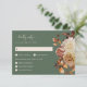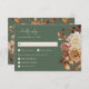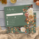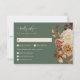 Sälj Grönt Höst löv Blommigt OSA kort. Ange tonen för bröllop under hösten med det här vågrät-OSA kort som innehåller vattenfärgsbilder av elegant som perfekt kompletterar ett fall firande. Bränd orange och terracotta löv, mjuk kräm och beige dahlias samt rik koppar och ro av rost-färgad placeras delikatmässigt mot en muterad bakgrund av sage grönt, skapande en varm och inbjudande design. Layouten innehåller utrymme för gäst namn och tydligt markerade måltider, skapar det både vackert och praktiskt. Perfekt för par tittar att skapa ett sammanhängande utseende genom sitt bröllop-kontor, och det här kortet blandar funktionaliteten med säsong charm. Anpassa den nu så att den matchar din unika firande.