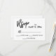Ge är dina gäster ett sätt att svara på inbjudan från bröllop firande med hjälp av denna enkla svart på vitt OSA kort. I designen har jag använt ett modernt, handskrivet teckensnitt för att skapa ett grafiskt typografiskt överlägg som läser "OSA", "M" och "Kärlek" på baksidan. Fyll i mallens blanksteg med dina detaljer om du vill anpassa designen. Alla lagrar har lämnats olåsta så att du kan klicka för att anpassa och flytta om texten eller ändra storlek eller det redigerbara typsnitten. Bakgrunden till färg lämnades vit, men detta är också redigerbart. Byt till ett av era färger i bröllop om ni så önskar. Tveka inte att söka hjälp med anpassning. 105