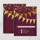 Returkort för osa med kuvert. Slimmad. Modern. Chic. Underskattat glam - med glittrande vimpelbanderoller i två skuggor av glitter med mousserande pepparkonger i olika storlekar och skuggor av guld. Svårstartsstjärnor belyser gnistran. En mycket contemporary typografisk textlayout som är allt annat än traditionell. Det är enkelt och kort. Det står till dina gäster: "Vi kastar en party och det blir party under en livstid!" För eleganten men icke-traditionell brud och trimning. FÄRG: Djupt mörk, vin, burgundy crimson red och guld, golden glitter. Särskilt lämpligt för höst- och höstbröllop, Nyårsafton Party, Födelsedagsfester och party-årsmeddelanden.