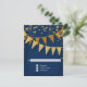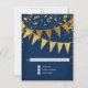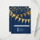 Returkort för osa med kuvert. Slimmad. Modern. Chic. Underskattat glam - med glittrande vimpelbanderoller i två skuggor av glitter med mousserande pepparkonger i olika storlekar och skuggor av guld. Svårstartsstjärnor belyser gnistran. En mycket contemporary typografisk textlayout som är allt annat än traditionell. Det är enkelt och kort. Det står till dina gäster: "Vi kastar en party och det blir party under en livstid!" För eleganten men icke-traditionell brud och trimning. FÄRG: royal vid djupt mörk, koboltblått och guld, guldglitter. Särskilt lämpligt för höst- och höstbröllop, Nyårsafton Party, Födelsedagsfester och party-årsmeddelanden.