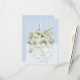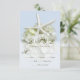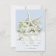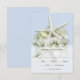Kort för OSA på Seaside Garden bröllopsmeny. Stor vit stjärnfisk och vit vattenfri blomma på ljusblått för att matcha designsamlingen. Svarskortet på lodrät innehåller text för fyra eller fem val genom att helt enkelt inkludera livsmedelsgruppen, såsom nötkött, kyckling, fisk osv.