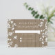 Planerar du en Land Western, utomhusträdgård eller gårdsodling stil bröllop? Med vita lådor för gästerna att skriva svaret på är det redot att skicka tillbaka det här matchande OSA Response-kortet till dig! En varm trästängslemåda och åldrasens bakgrund blandad med enkel och söt, ändå har elegantens babyandetag målats i oljepastel av Audrey Jeanne Roberts för ett modernt intag av rustiska landsbyggsbröllop. Din bröllopsinbjudningstext är utgiven i en contemporary typografi i stil som är populär och trender. På en marin blå bakgrund färg som du kan byta till vilket färg som helst vill du använda färg-väljaren i bakgrunden verktyg.