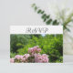 Rosa bergsstjärnor formade blommor med grön bakgrund. Infoga bröllop-detaljer på baksidan mot skarp vit bakgrund. Originalfotodesign av TamiraZDesigns.