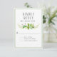 Hand målad vattenfärg med eucalyptus löv och grönt i löv paras med en ren typografisk textdesign och en sexkantig baksida av mönster. Rengör. Modern. Naturlig. Det här OSA Response-kortet koordinerar med bröllopsinbjudningssviten och det är upp till dina gäster att fylla i och återvända. Anpassa enkelt din information i vår enkla mall. Modern, enkel formatering med en serif, all teckensnittsdesign med sockel.