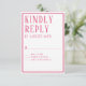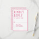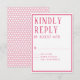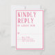 Det här OSA Response-kortet koordinerar med bröllopsinbjudningssviten och det är upp till dina gäster att fylla i och återvända. Anpassa enkelt din information i vår enkla mall. Du kan anpassningsbar färg gräns, teckensnitt och bakgrund färg mönster med hjälp av den enkla verktyg som tillhandahålls. Visas i smart, rik rosa. Modern, enkel formatering med en serif, all teckensnittsdesign med sockel.