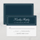 Det här klassiska bröllopet OSA i marinblått och vitt är enkelt och elegant och har en tunn linje gräns kring OSANS svarsdatum. Anpassa svarsdatumet med önskat OSA. Det här kortet finns i en rad olika förinstallerade system i färg. Du kan också redigera bakgrunden färg till färg efter eget val. Om du bestämmer dig för att redigera bakgrunden färg, se till att ändra färg på både framsidan och baksidan av kortet.