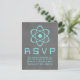 Reaktionskort från Bröllop i Cute och nerdy Atomic Chalkboard med en enkel atomiskt symbol i turkos på en kalkbrädesbakgrund. Det här bröllopet OSA för geeky och roligt är perfekt för vetenskapsentusiastparet! Enkel att anpassa, lägg bara till informationen om bröllop i de utrymmen som finns. Klicka på Anpassa om du vill söka efter fler anpassningsalternativ.