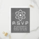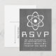Reaktionskort från Bröllop i klack och njud, med en enkel atomiskt symbol i vitt på en kritbordsbakgrund. Det här bröllopet OSA för geeky och roligt är perfekt för vetenskapsentusiastparet! Enkel att anpassa, lägg bara till informationen om bröllop i de utrymmen som finns. Klicka på Anpassa om du vill söka efter fler anpassningsalternativ.