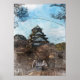 En arkitektonisk skiss av Osakas slott i Japan med vattenfärgad bakgrund.