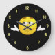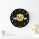 Kylt omvänd väggklocka med ansikte i mitten på en svart bakgrund. Det finns ingen text på den här produkten, men den kan läggas till om du vill ha hjälp med att anpassa produkten. Kontakta mig genom min butik och jag kommer att vara mycket lycklig till dig.