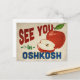 Ett charmerande Oshkosh Wisconsin vintage resor-vykort med ett fint rött äpple, tillsammans med texten från roligt retro stil där det står: "Se dig i Oshkosh"