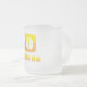 Oshun frosted glass mugg med namn och okoniska O- och cowries, båda tryckta i gult och orange.