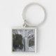 Oskarp vattenfall som omges av en snöig skog fyrkantig silverfärgad nyckelring