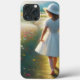 Den här bilden visar en ung flicka i en vit klänning och hatt som går barfoot genom en fält av vibranta blommor. Inställningen visas som serene och picturesque, med en mjuk, drömmande kvalitet på belysningen, vilket antyder att solljus på tidigt morgon eller sen eftermiddag är försent. Fält är förtjust i en mängd färgfulla blommor, och flickan verkar utforska eller njuta av ett fredligt ögonblick i naturen. Bildens övergripande ambians är lugn och oskyldig, vilket ger en känsla av och enkelhet.
