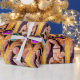 OSKULD OCH BARN MED BLÅTT, ROSOR, PURPURFÄRGADE PRESENTPAPPER