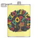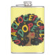 Svart tjej afro med panafrikanska färger och "Oskuldigt häftig" text