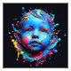 En porträtt av en ung pojkes ansikte i en abstrakt stil. Himlar-blåa toner blandas sömlöst med mörk i färg, skapar en 3D-effekt som håller i sig. Bilden fångar oskuld i barnets uttryck, omgivna av en värld av färgstark fantasi.