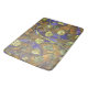 Detta badmatt har löv från en hallonbuske, utan hallon, i gröntar med varm gult, i färg och lastad, plus kamel guld och mörk periwinkle, i markör, konst av mig, Kristie Hubler. Har sålt på duschgardiner och andra artiklar. Inspirerad av en sammetsväv täckt ram, broderad med löv, från 1940-talet. Jag började med att doppa med markörer, efter att ha tittar på några löv med hallon.