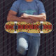 Oavsett om du gör grinds på halfpipen eller kickflips på gatan, har denna tävlingsformade bräda suverän pop! Våra däck är tillverkade av högkvalitativt hårdrocksmahogny och med vår unika tryckprocess får du den bästa skateboarden som finns tillgänglig i världen.