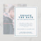 Ändring av plan ospara datum enkelt text mörkblått och vitt kort med ett nyligen taget parfoto på baksidan. Låt dina gäster veta att ert bröllop eller annan tillställning har ställts in eller skjutits upp på grund av oförutsedda omständigheter. Andra matchande artiklar finns tillgängliga.