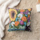 Denna 16" x 16" dekorativ kudde presenterar en blom- målning Becky Schultea för den original- akrylen, "vildblomman ösregnar buketten" som inkluderar en cheery solros,