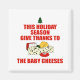 En mängd ostar som baby sväljer etc. och frasen "Denna julhelg ge tack vare osten baby" Bakgrunden färg kan ändras.