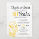 Informella och roliga cheers och öl vuxen manar trettio födelsedagsfest inbjudan-kort med ett finare-typografiskt manus, en gult-doodle öl mugg och vintage stil roller. +++++++++++++ Lämpligt för alla ålders- eller milstolpar födelsedagsfester. Lätt att anpassa genom att ändra ålder, namn och party!