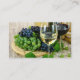 Flott ost och mallen för vinrestaurang- eller boutiquevisitkorten med avbildar av exponeringsglas för ett vin och vindruvor som skrivs lätt ut på bakgrunden, så du kan se din information om affären klart med den oavkortade färgen för avbilda på flipsidan för att tillfoga till temat. Designat för en restaurang, en vinfördelare eller en vinodling.