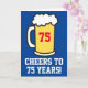Skål till 75 år med en tecknad öl mugg. Underbar för nån som firar sin 75:e-födelsedag. Insidan är tom för ditt eget födelsedagsmeddelande. Underbar för en öl älskare som blir sjuttiofem.