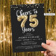 Skål för 75 års Guld-ballonnumerus Black-inbjudningar. Fira en 75:e-födelsedag med dessa elegant- och festinbjudningar med titeln CHEERS TILL 75 ÅR med faux metallic guld ballongnummer och modern manustypografi och guld konetti i ditt val av bakgrund färg (i svart). ASSISTANS: Om du vill ha hjälp med designändringar eller anpassning, överföra designen till en annan produkt eller om du vill samordna artiklar kontaktar du designern INNAN du beställer den via Zazzle-Chatta eller e-post makeitaboutyoustore@gmail.com.