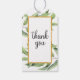 Eleganten och de moderna stil Cheers till Kärlek Bröllop-presentglasen har två mousserande champagneglas i en skål till kärlek. Anpassa detta moderna stil bröllop tack till att du ger märkre med namn och datumet för ditt evenemang. På baksidan av presentens märkre finns det ett söt guld och botaniskt löv ram med "tack" skrivet i trendigets skript.
