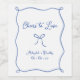 Whimsical Cheers to Kärlek Hand plockade Bow Fransk Blue Vin Label med stil-handskriftsteckensnitt. Perfekt för bröllop och förlovningsfester.