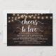 Modern Calligraphy Inbjudningskort för möhippan-kort (Cheers to Kärlek), i ljus av rustik mörk-trästräng. Inbjudan gästerna med detta perfekt-inbjudningskort. Lägg till information om möhippan i matchande ordalydelse.