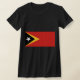 Flagga i Öster Timor. Flagga i Öster Timor antogs 2002. Det är samma sak som 1975 års flagga. Vid midnatt den 19 maj och under de första stunderna i Independence day den 20 maj 2002 sänktes FN:s Flagga och flagga om ett Timor från oberoende togs upp. Enligt Demokratiska republiken Öster Timors författning, del I, punkt 15: "Den nationella flagga är rektangulär och består av två isosceles triangles, vars baser överlappar varandra. En triangel är svart och dess höjd är lika med en tredjedel av längden som överlappar gultens triangel, vars höjd är lika med halva längden av Flagga. I mitten av den svarta triangeln finns en vit stjärna med fem ändar, vilket betyder det ljus som styr. Den vita stjärnan har en av sina ändar vänd mot flagga lämnat ände. Resten av flagga är röd."