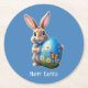 Ein hübscher Osterhase mit blauer Schleife und Osterei. Digital erstellt.