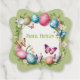Bunter Kranz mit Pflanzen, Ostereiern und Schmetterlingen - Schriftzug "Frohe Ostern". Personalisierbar: Einfach Text oder Name etc. ersetzen oder Feld im Design-Tool Feld löschen.