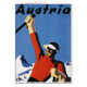 Vintage resoraffisch för Österrike i en illustrativ stil för art déco som främjar skidåkning- och vintersportar.
