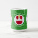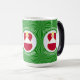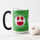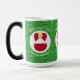 Magisk föränderlig mugg visar en österrikisk ängel, iklädd Österrikes flagga, inuti en vit fraktal cirkel av snurriga fyrkanter. Cirkeln är på en grön fraktal bakgrund av snurriga fyrkanter. Lägg till ett namn, högtid och år för att anpassa din mugg som en present eller för att lägga till din semesterdekoration. Vacker för juldekoration. Designen visas på muggens tre sidor. Använd alternativet "redigera design" för att ändra teckensnitt och/eller färg för namnet, högtiden och året.