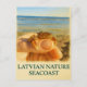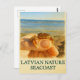 Med detta vykort för vattenfärg-stil fångas ett charmerande ögonblick från den lettiska kusten - en liten krabba som hålls försiktigt i hand mot Östersjöns stilla bakgrund. En lekfull hyllning till de naturliga underverk som gömmer längs den lettiska kusten, perfekten för havets älskare, natursamlare och baltiska resenärer.